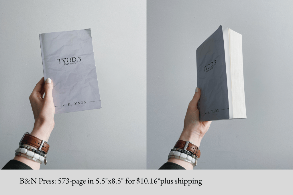 All in all, it costs less than $15 for a bound copy of my first drafts from both KDP and B&N. Which is way more budget-friendly than at-home printing or an office supply store. Beyond that, it’s far more comfortable to hold, easier to make notes in (this is a personal opinion, of course), and easier to store after you’re done with it.